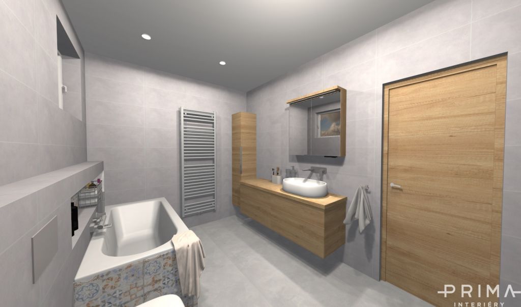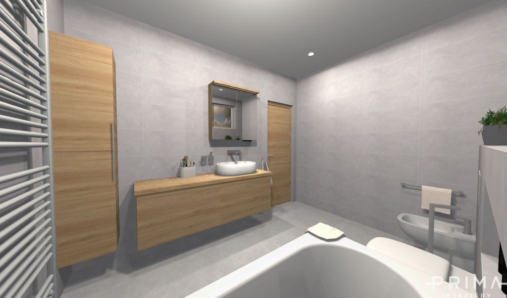 Do koupelen v dřevostavbách často naši klienti vybírají obklady a dlažby v dekoru dřeva a nebo šedé odstíny.