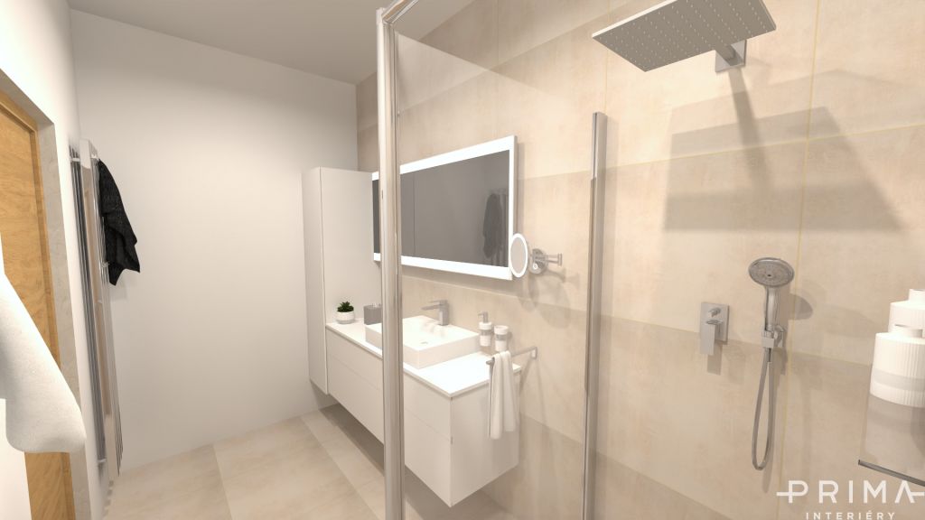 Nakonec vyhrál obklad, který jsme doplnili bílým nábytkem a výsledek je velice pří...jemný.